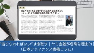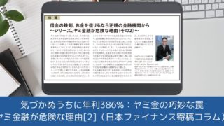 消費者金融の利用については、正しい知識があるかどうかで安全性が大きく変わります。前2回のコラムで、ヤミ金融に手を出すことの危険性を実例とともにお伝えしてきましたが、「正規業者とヤミ金融の違いが分からない」「見分け方を知らない」という方も少な...