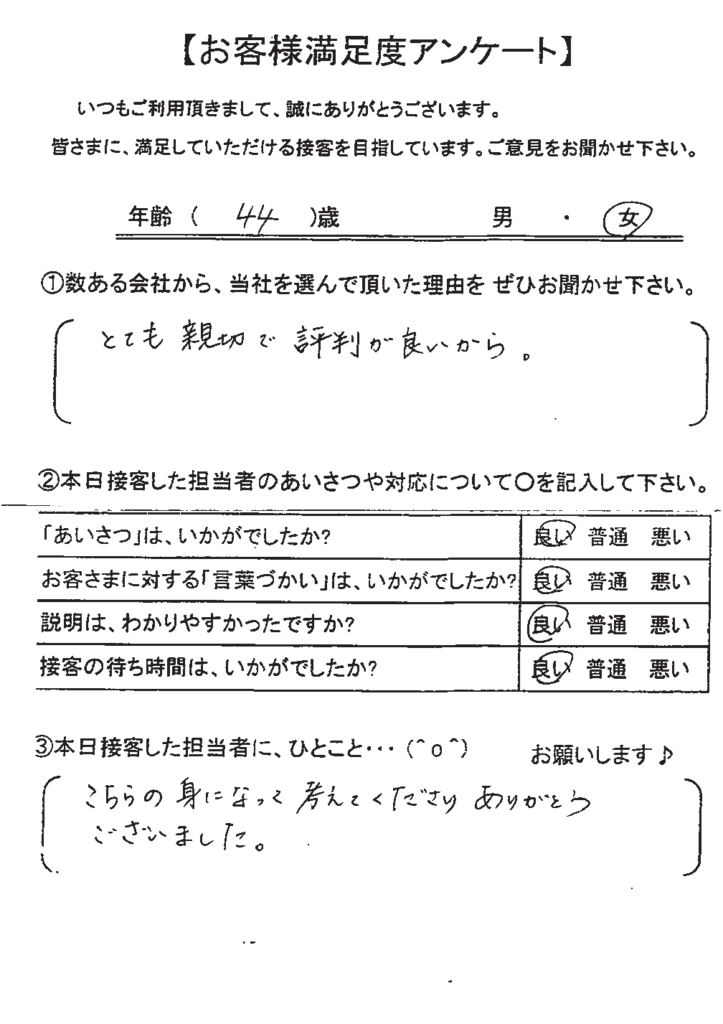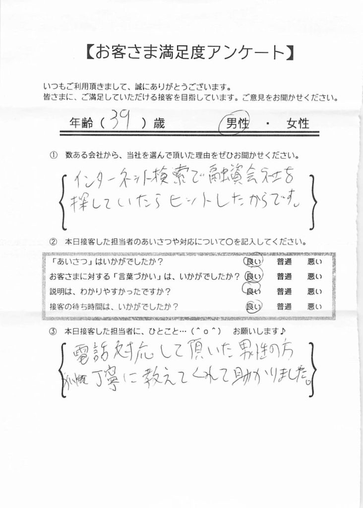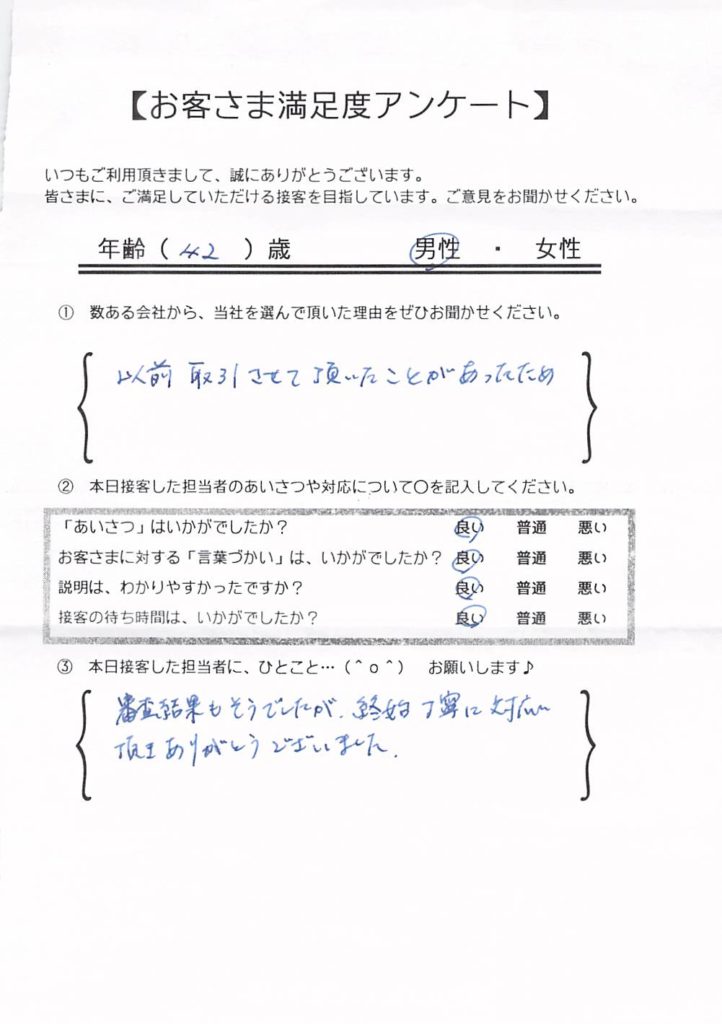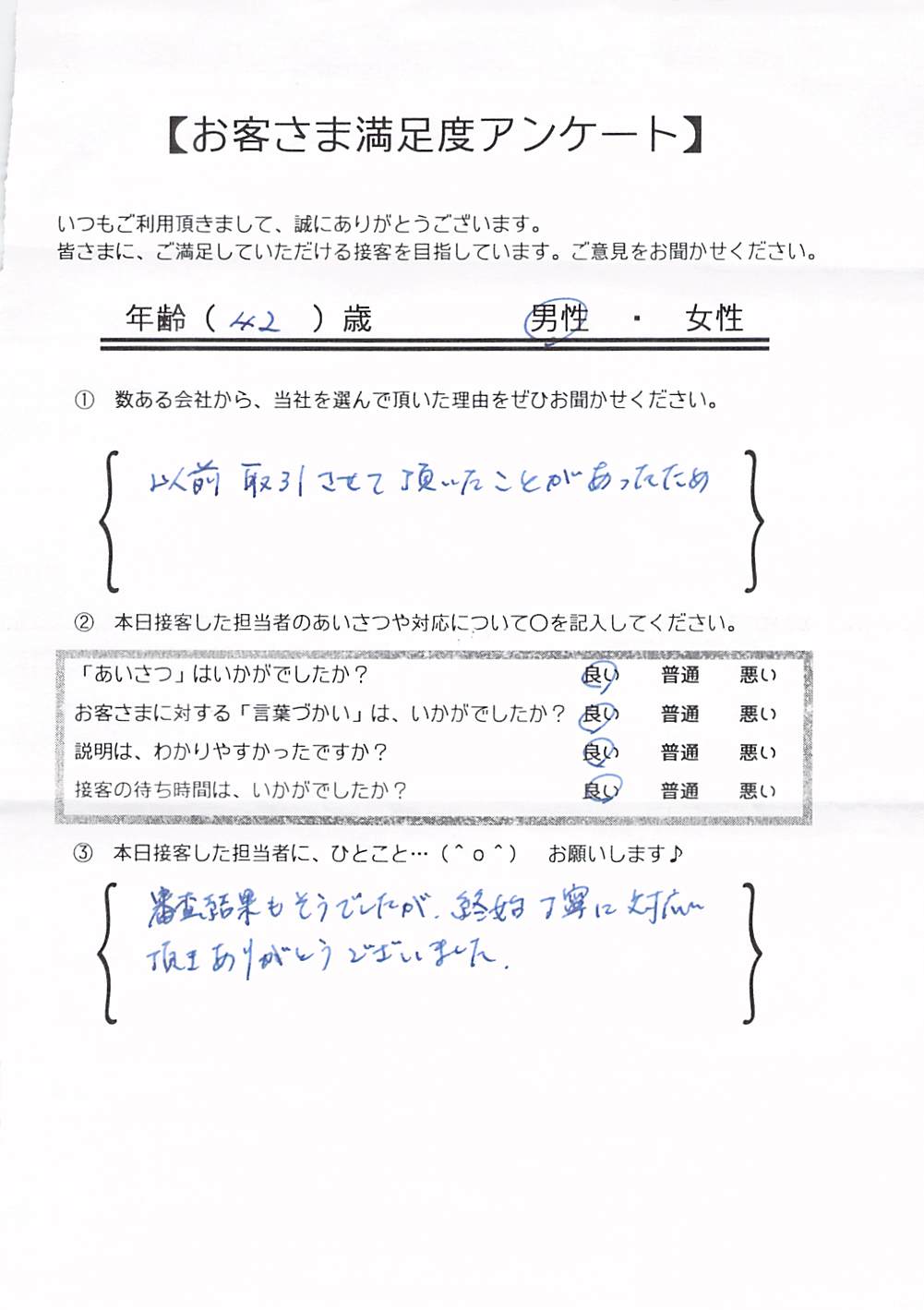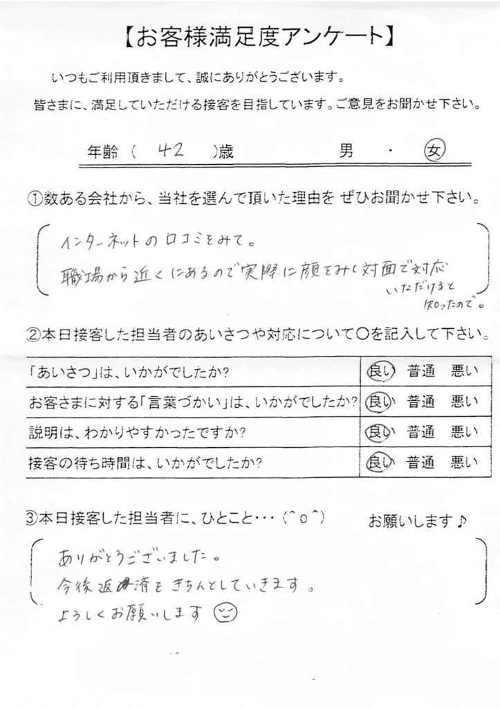 日本ファイナンスでは実際にご利用いただいているお客さまにアンケート用紙のご回答をお願いしており、お客さまから実際にお寄せいただいたクチコミや評判をそのまま紹介しています。
