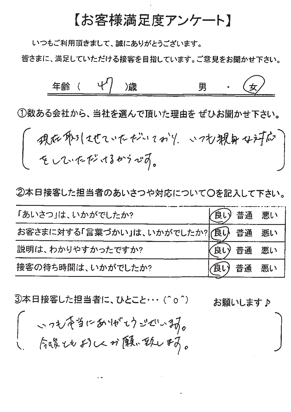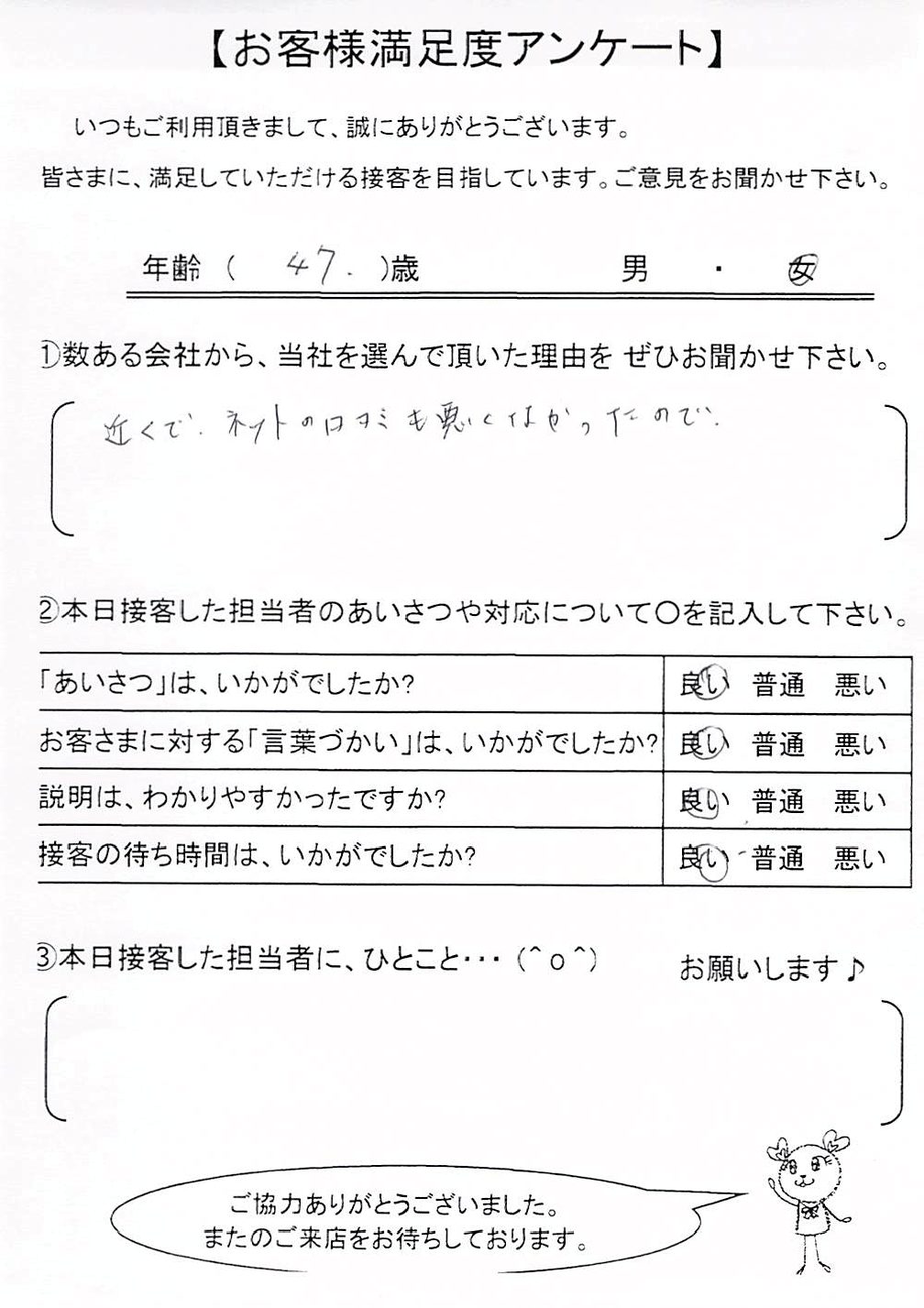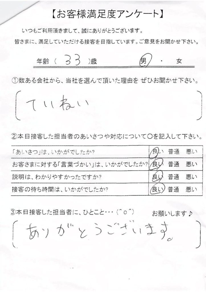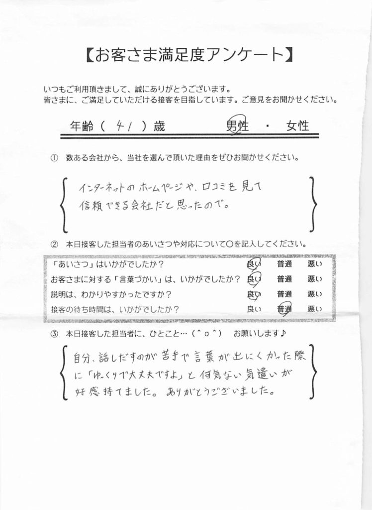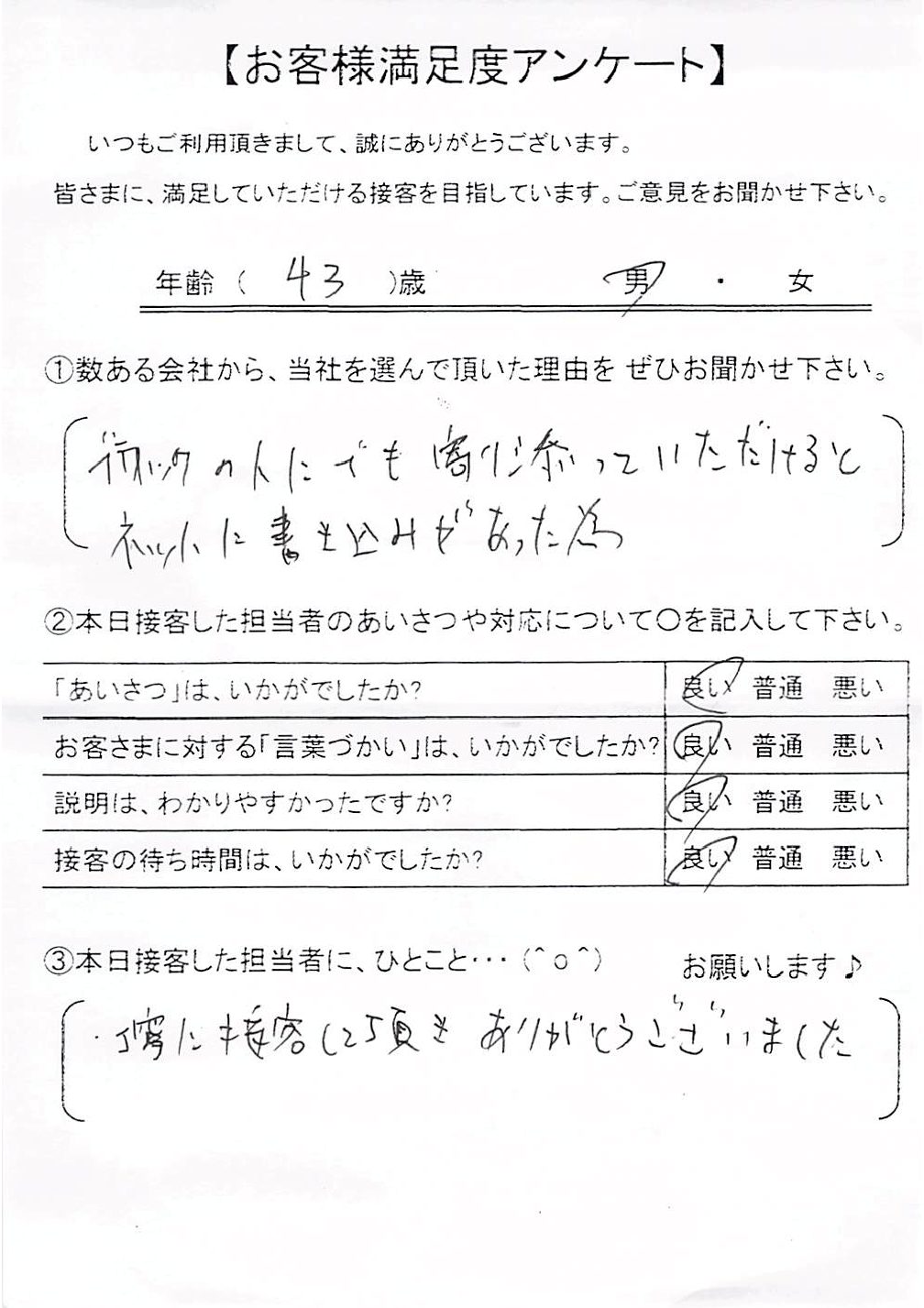 クチコミ・評判の書かれた、お客さまが実際に回答されたアンケートの原文がこちら↓