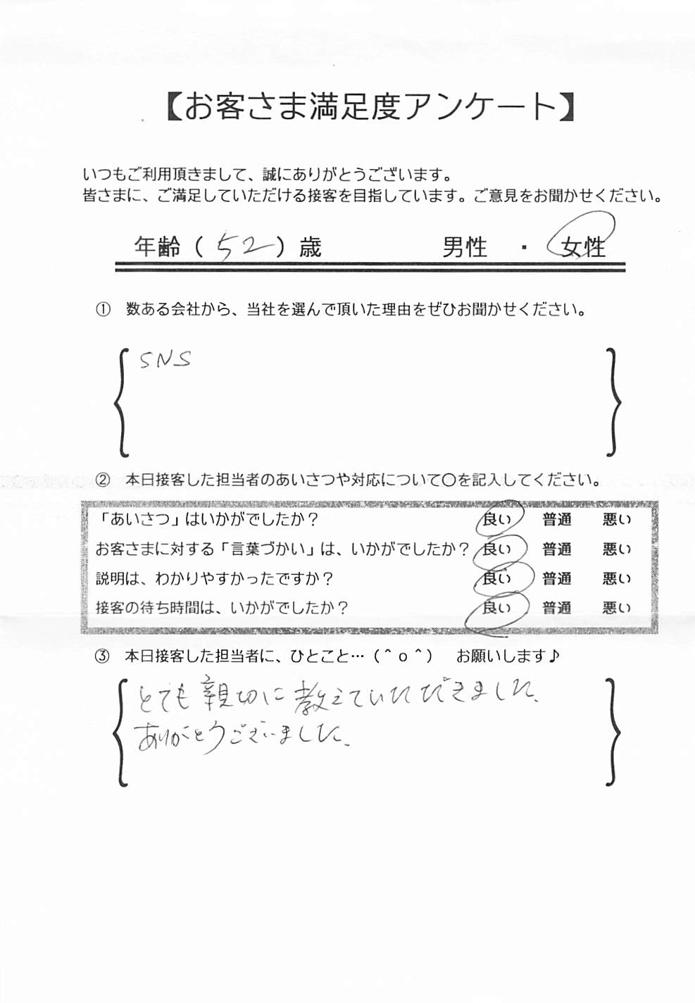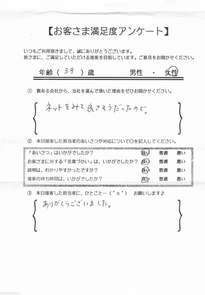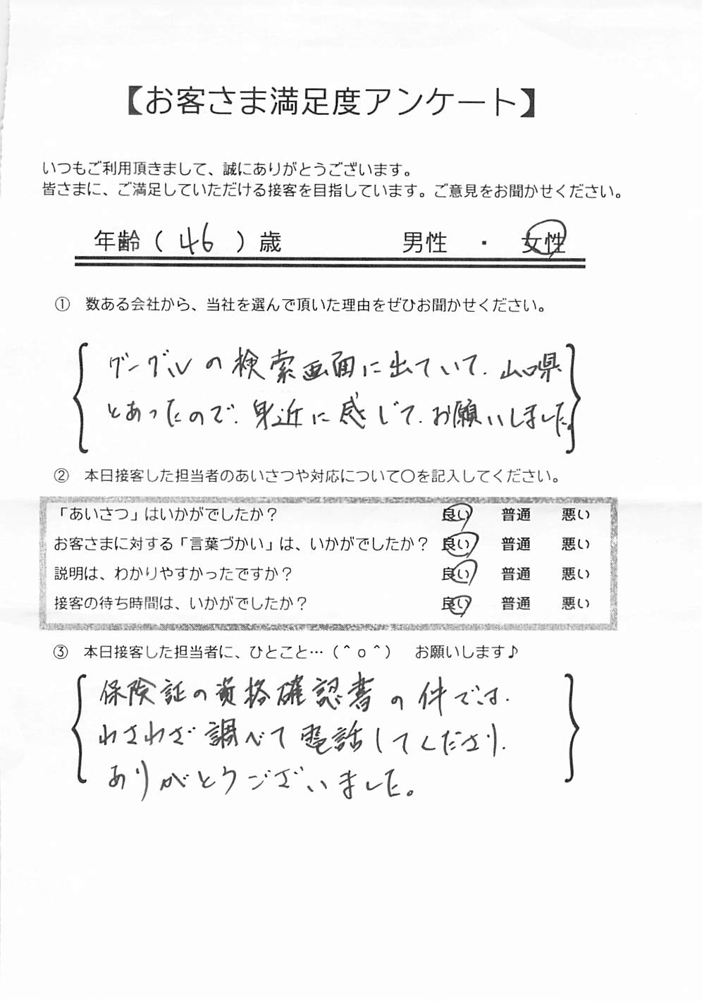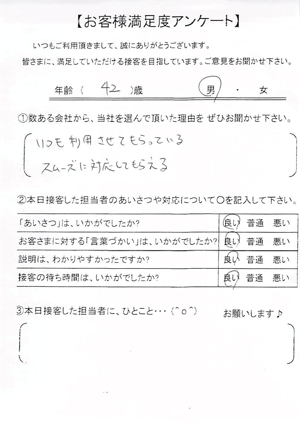 クチコミ・評判の書かれた、お客さまが実際に回答されたアンケートの原文がこちら↓