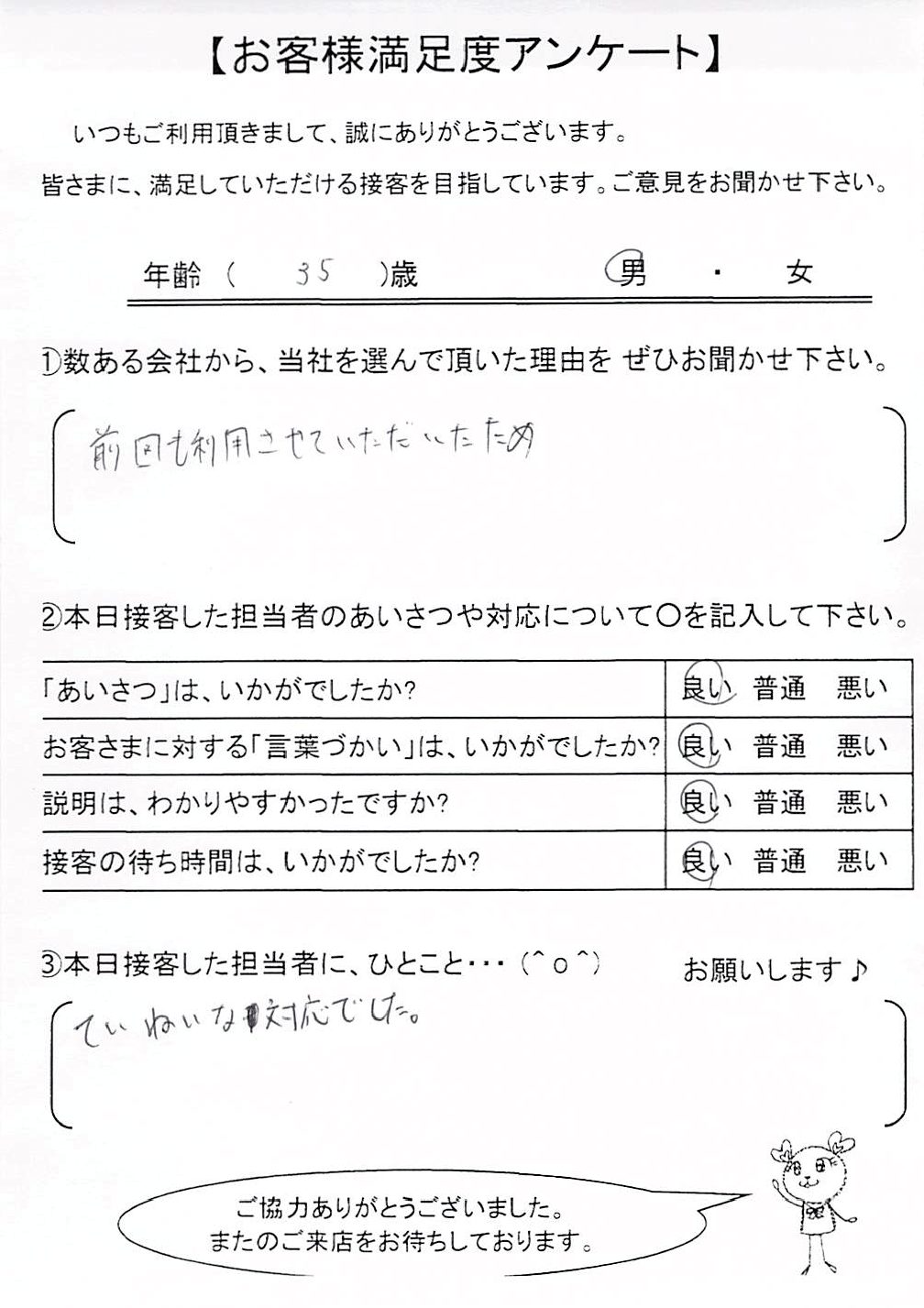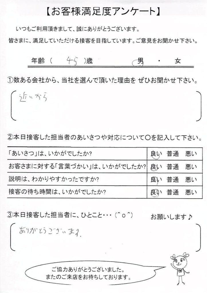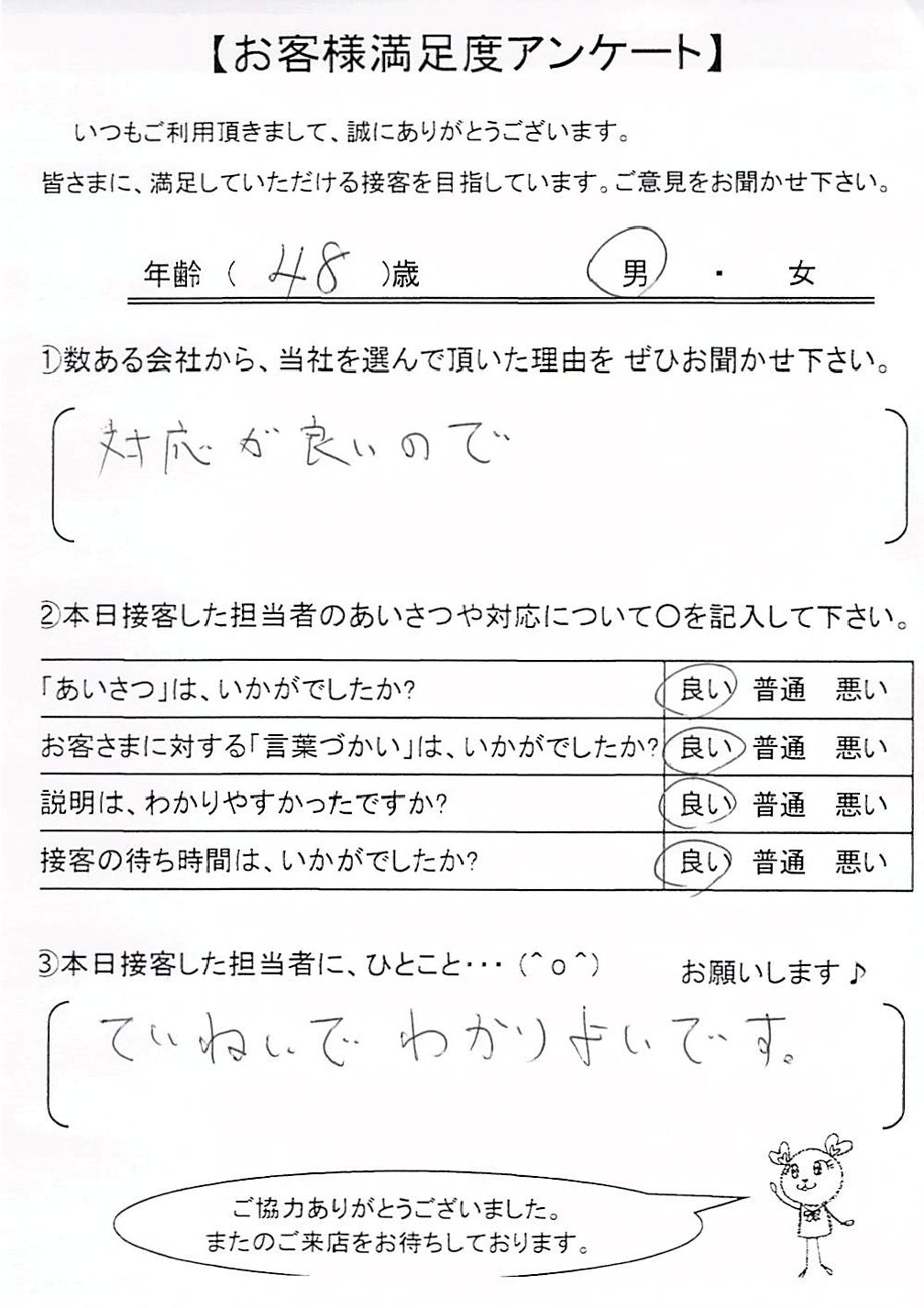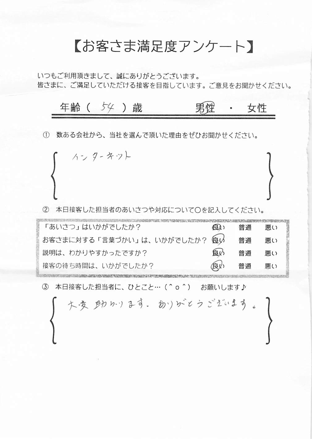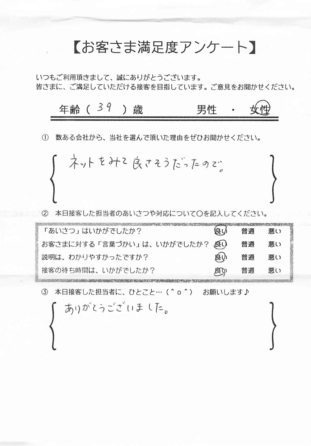 クチコミ・評判の書かれた、お客さまが実際に回答されたアンケートの原文がこちら↓