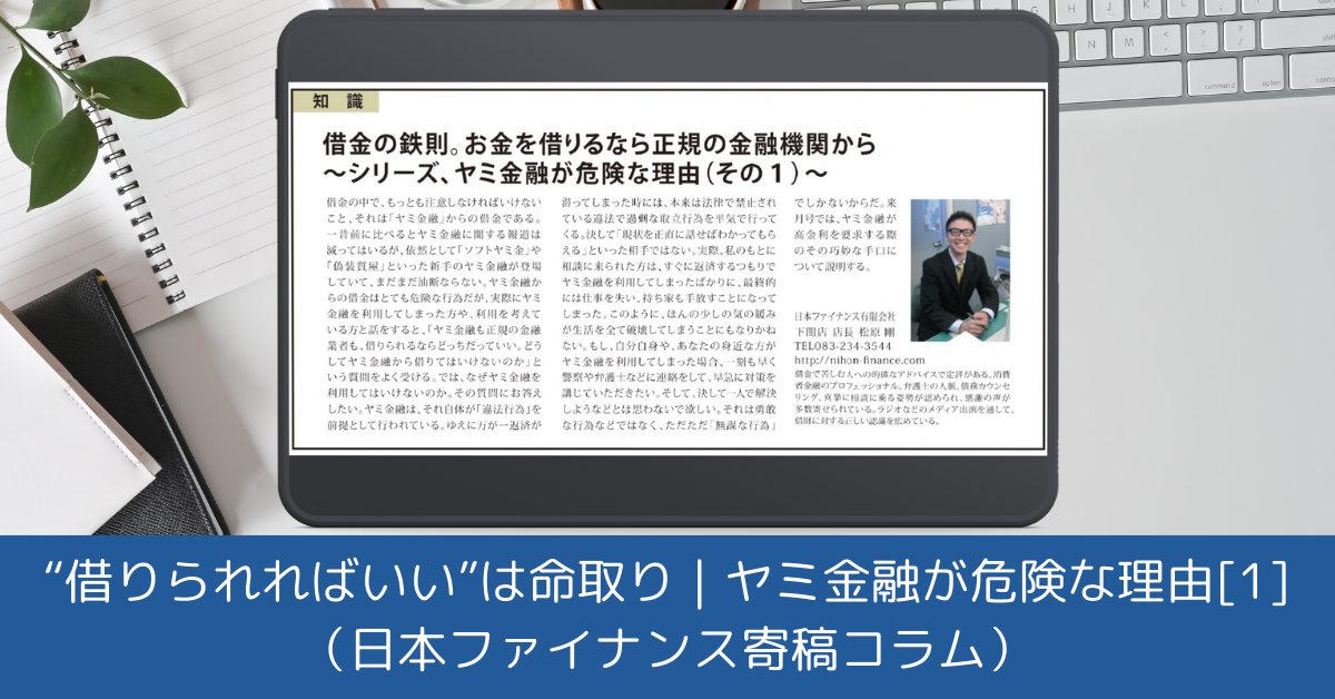 今回から3回にわたり、「なぜヤミ金融が危険なのか」について、実際の相談事例をもとに、わかりやすくお伝えします。