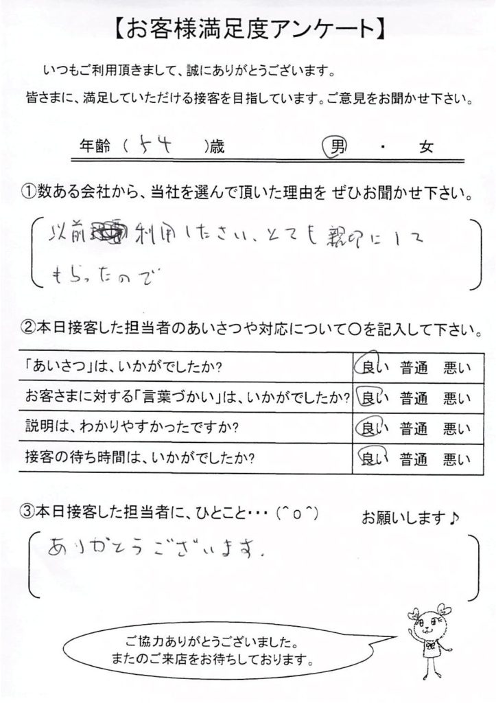 クチコミ・評判の書かれた、お客さまが実際に回答されたアンケートの原文がこちら↓