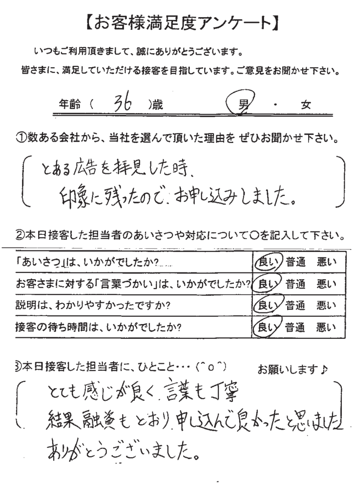 日本ファイナンスでは実際にご利用いただいているお客さまにアンケート用紙のご回答をお願いしており、お客さまから実際にお寄せいただいたクチコミや評判をそのまま紹介しています。