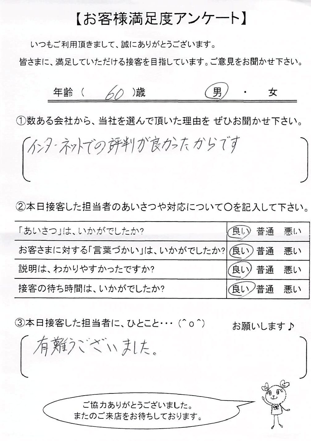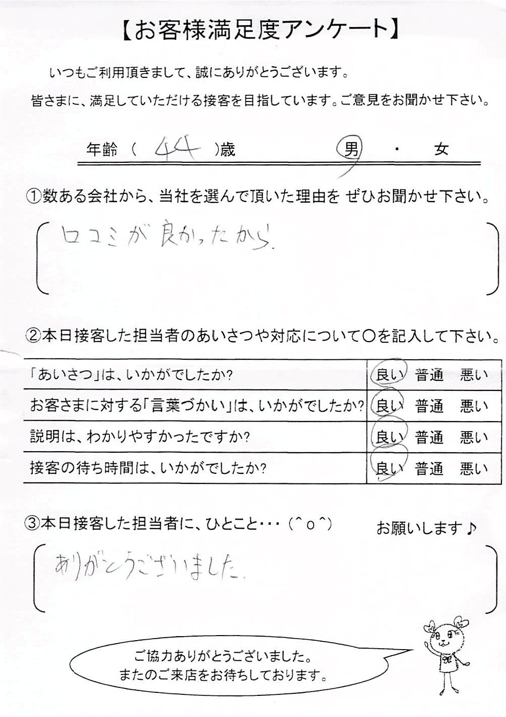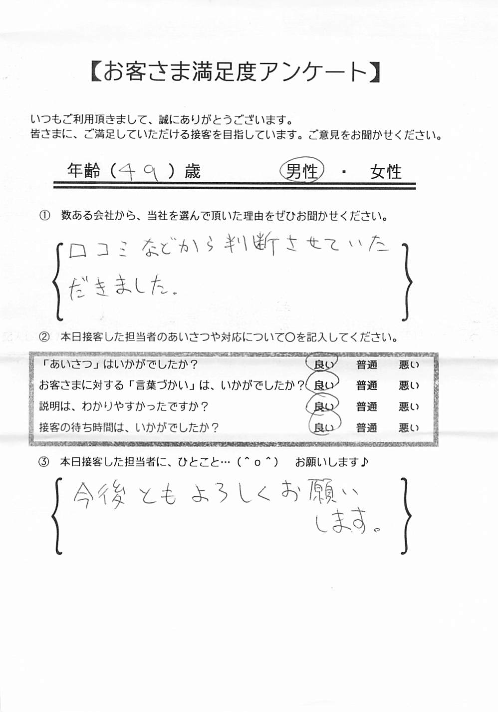 クチコミ・評判の書かれた、お客さまが実際に回答されたアンケートの原文がこちら↓