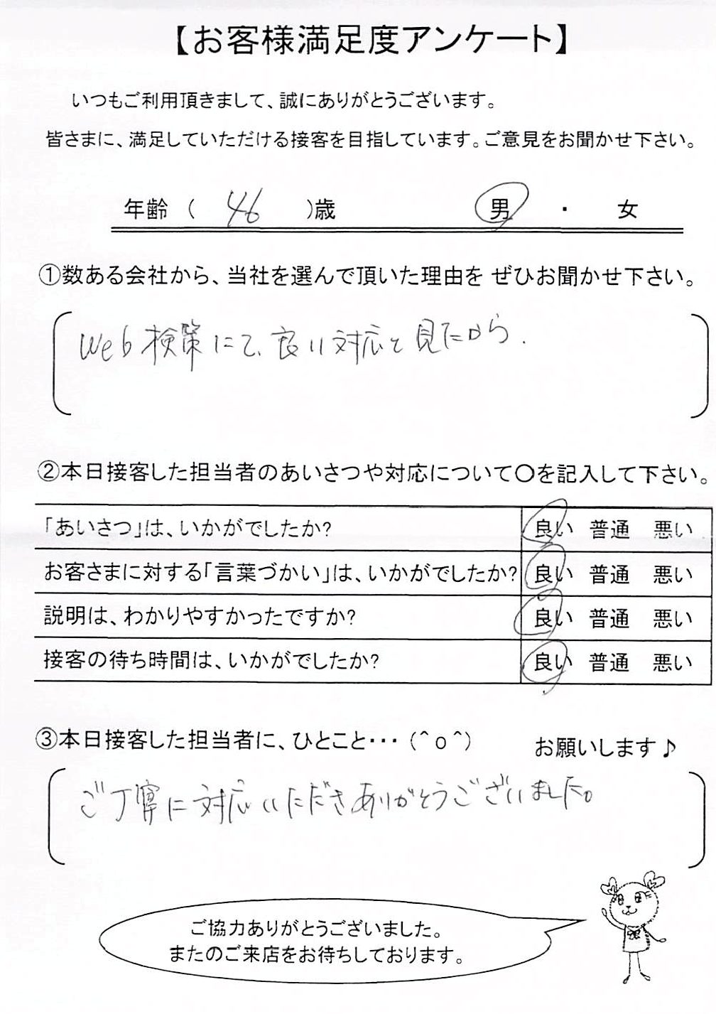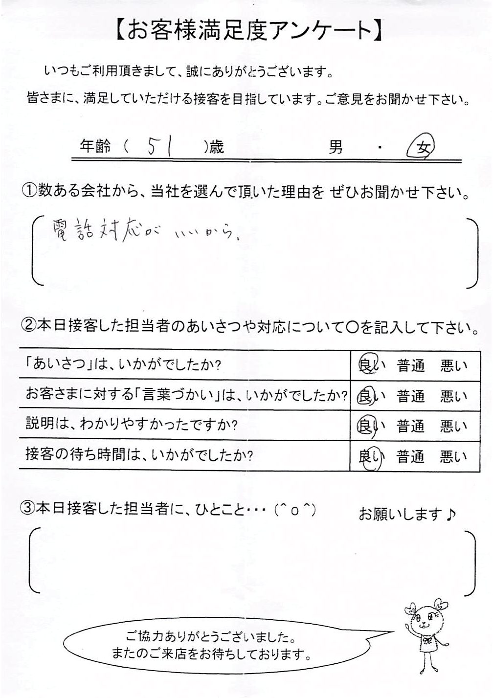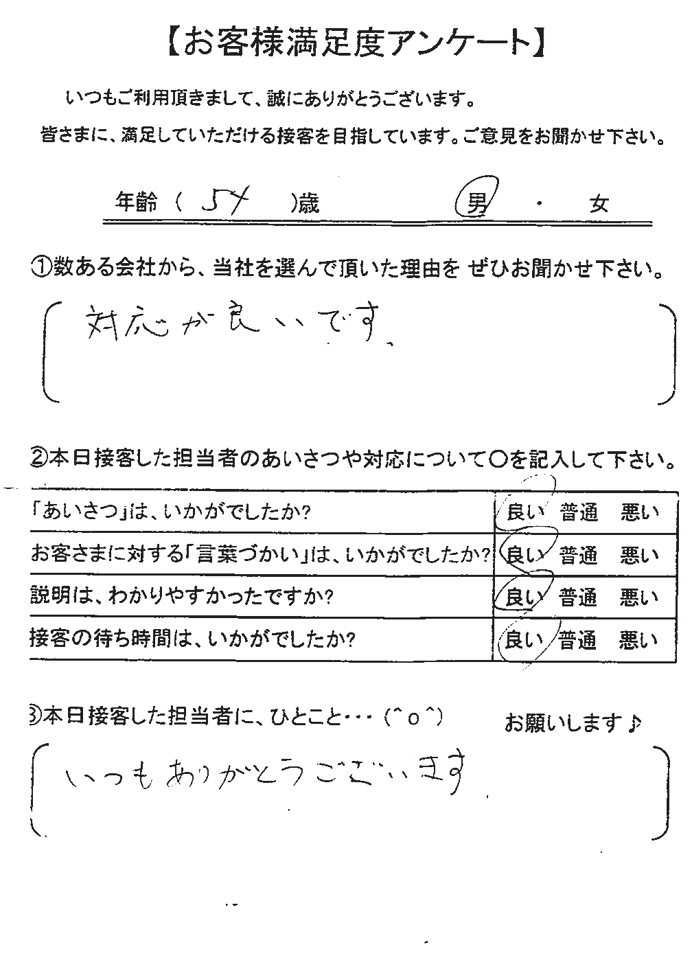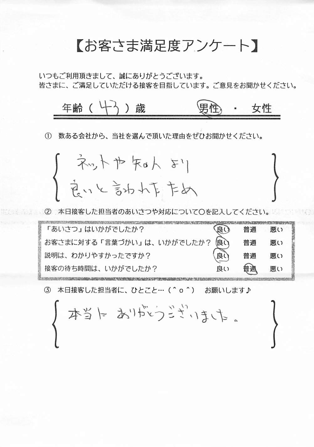 クチコミ・評判の書かれた、お客さまが実際に回答されたアンケートの原文がこちら↓