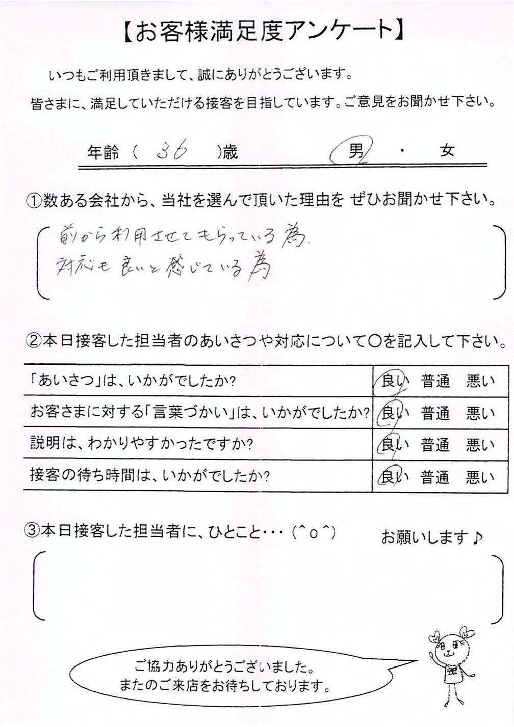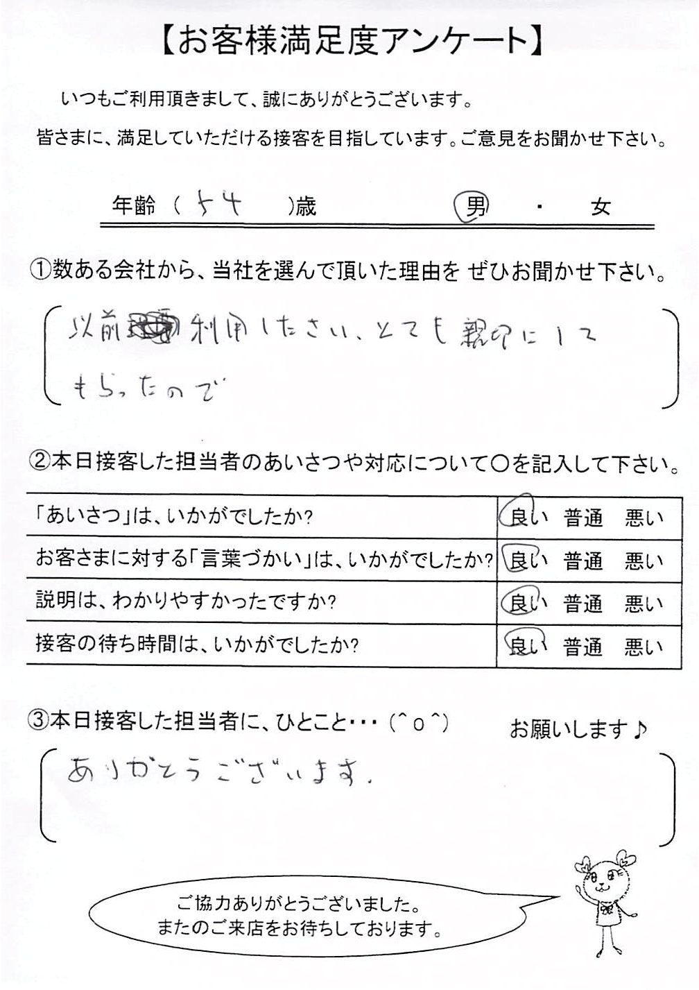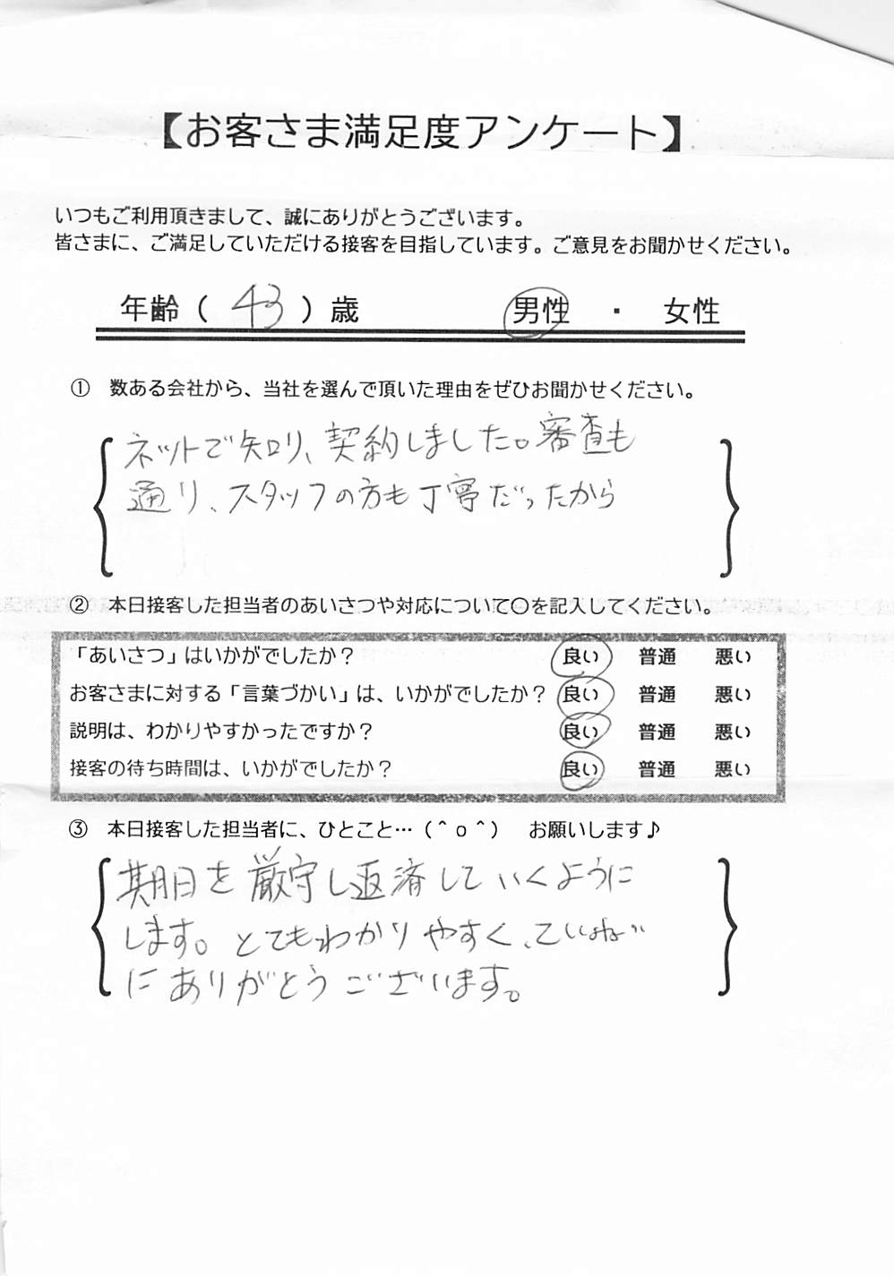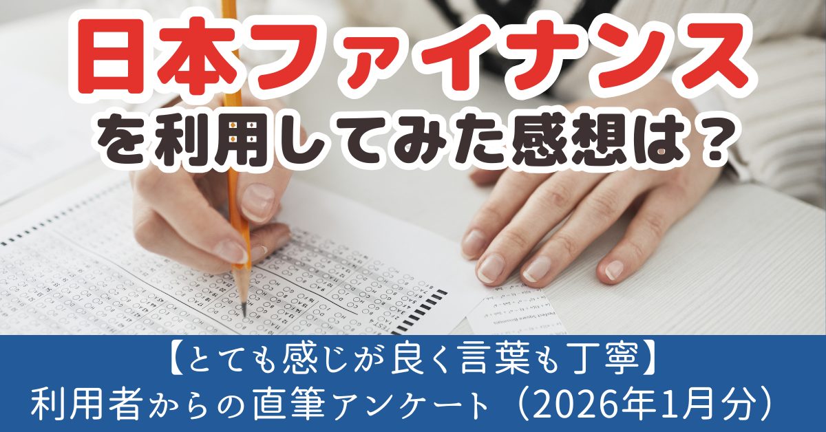 日本ファイナンスでは実際にご利用いただいているお客さまにアンケート用紙のご回答をお願いしており、お客さまから実際にお寄せいただいたクチコミや評判をそのまま紹介しています。