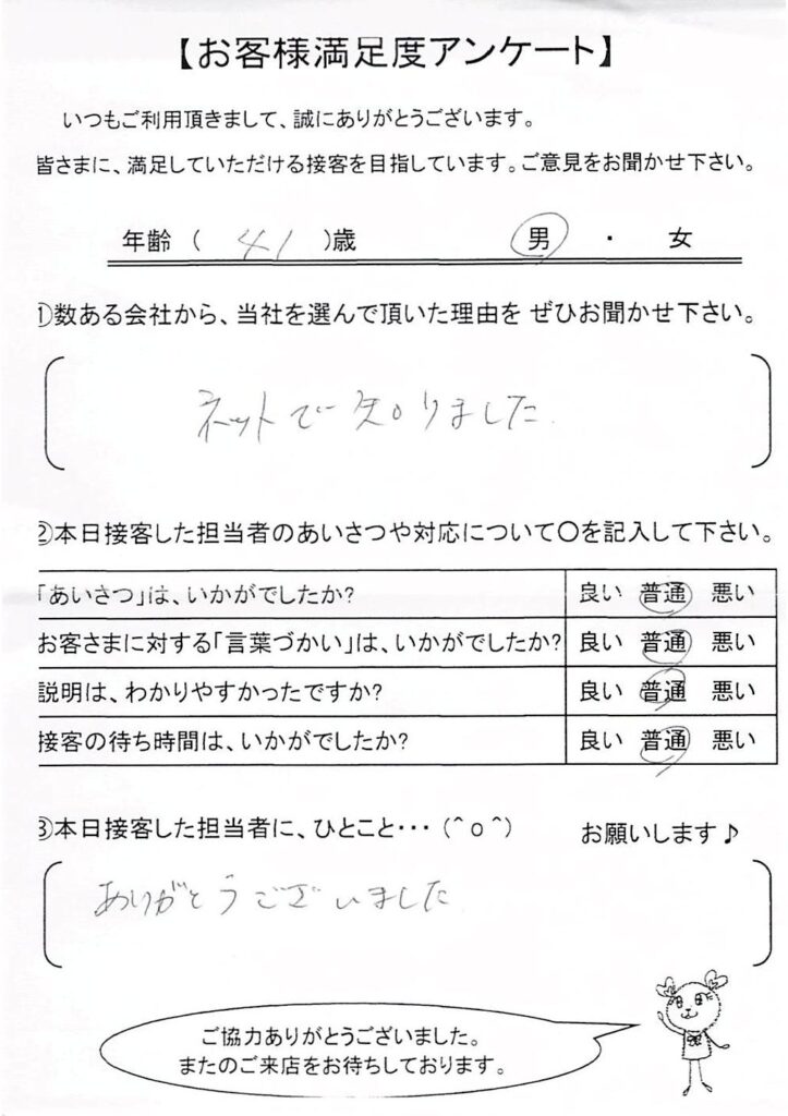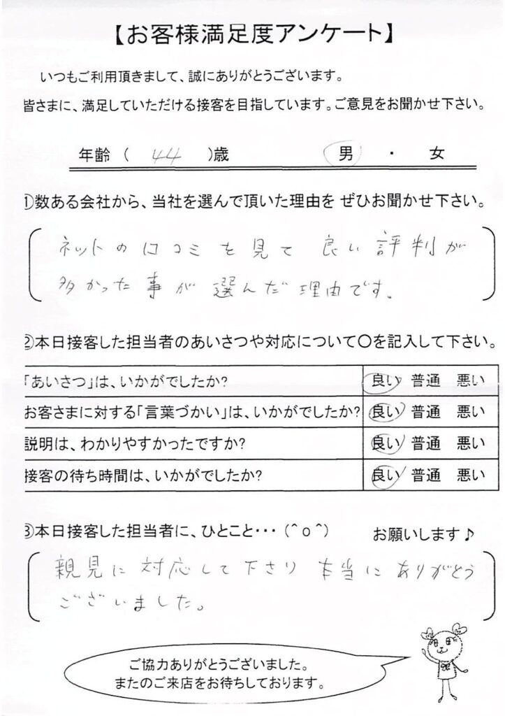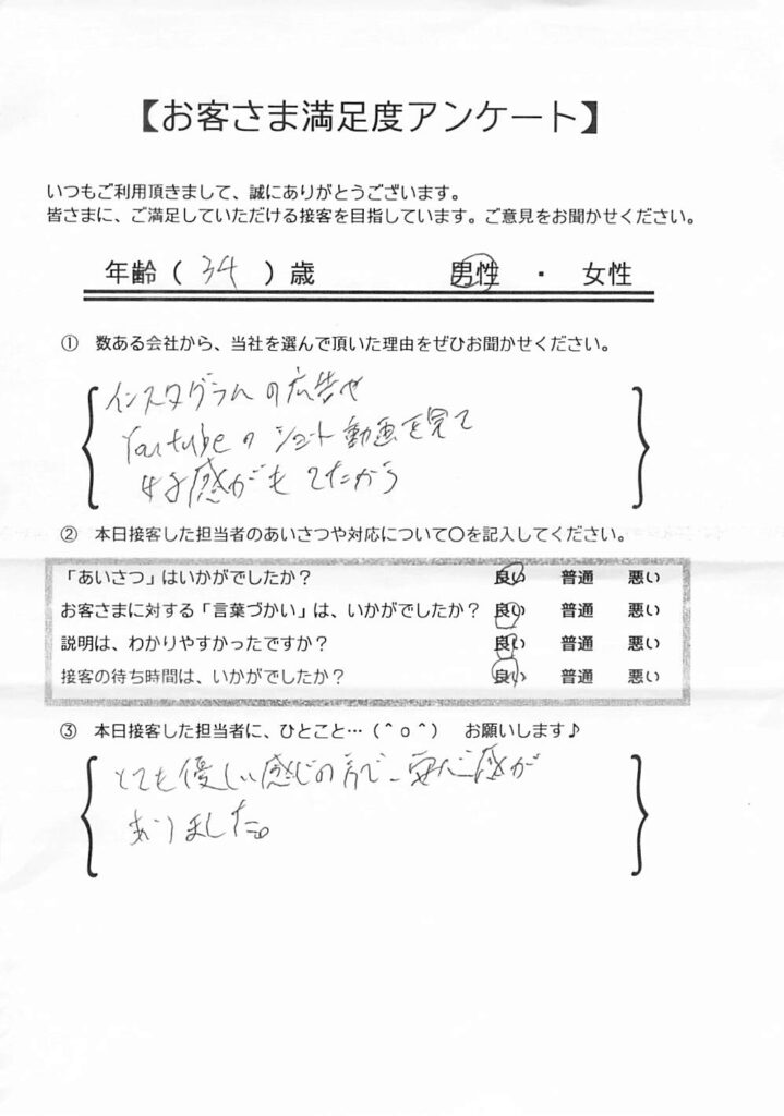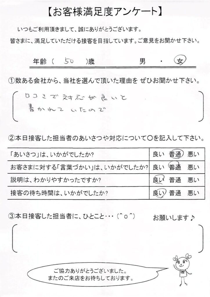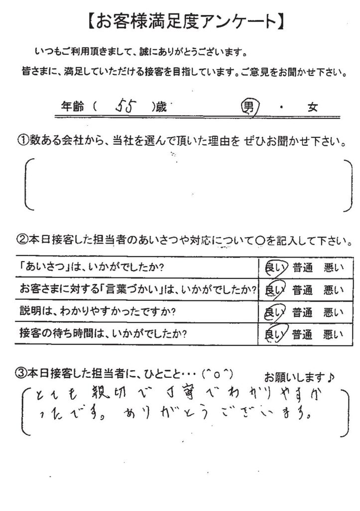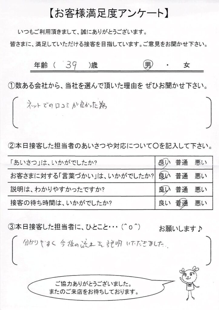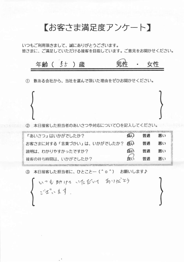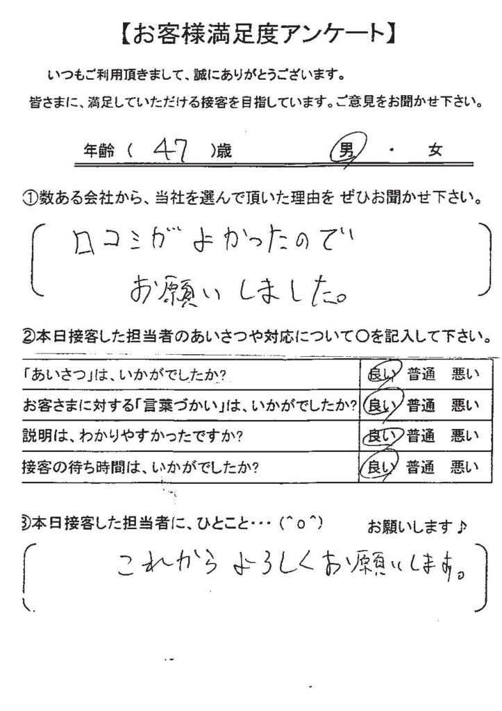 クチコミ・評判の書かれた、お客さまが実際に回答されたアンケートの原文がこちら↓
