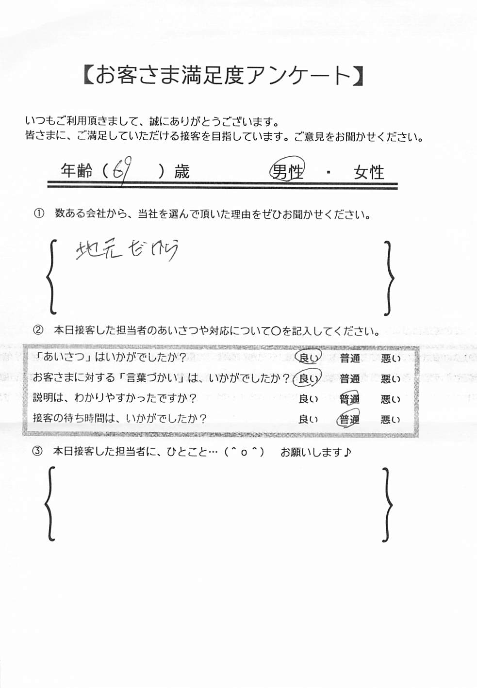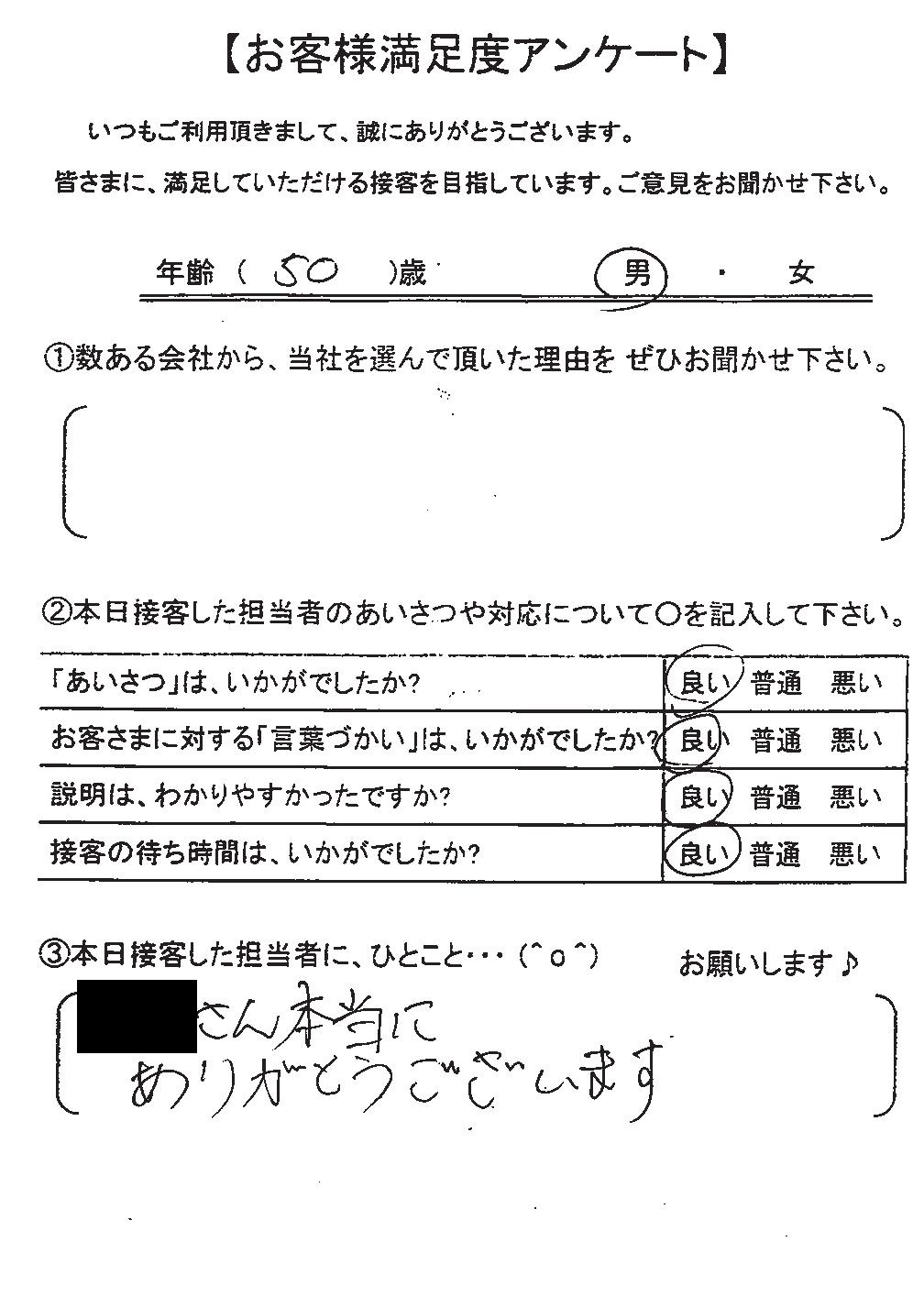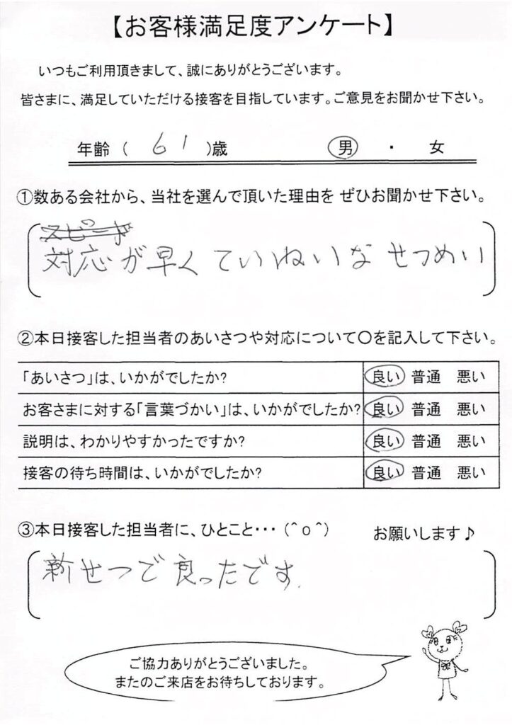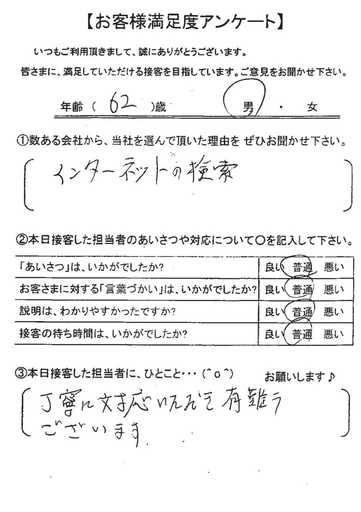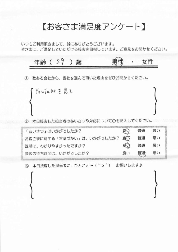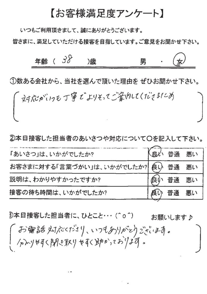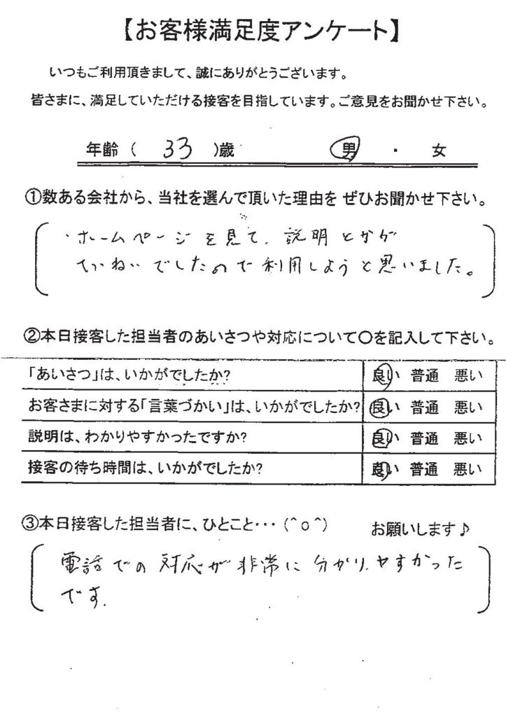 クチコミ・評判の書かれた、お客さまが実際に回答されたアンケートの原文がこちら↓