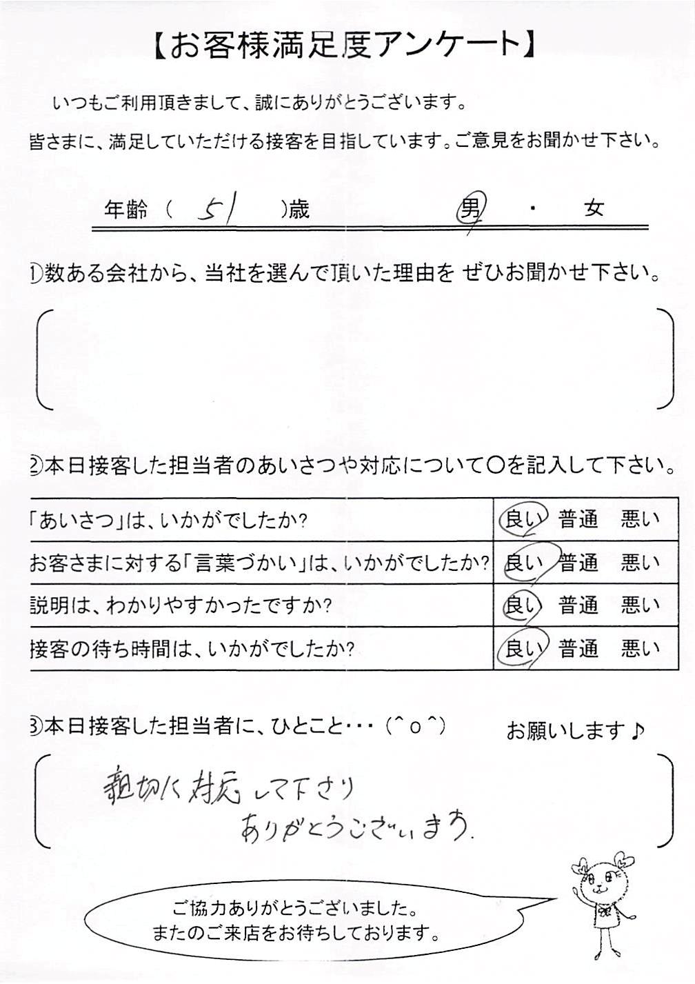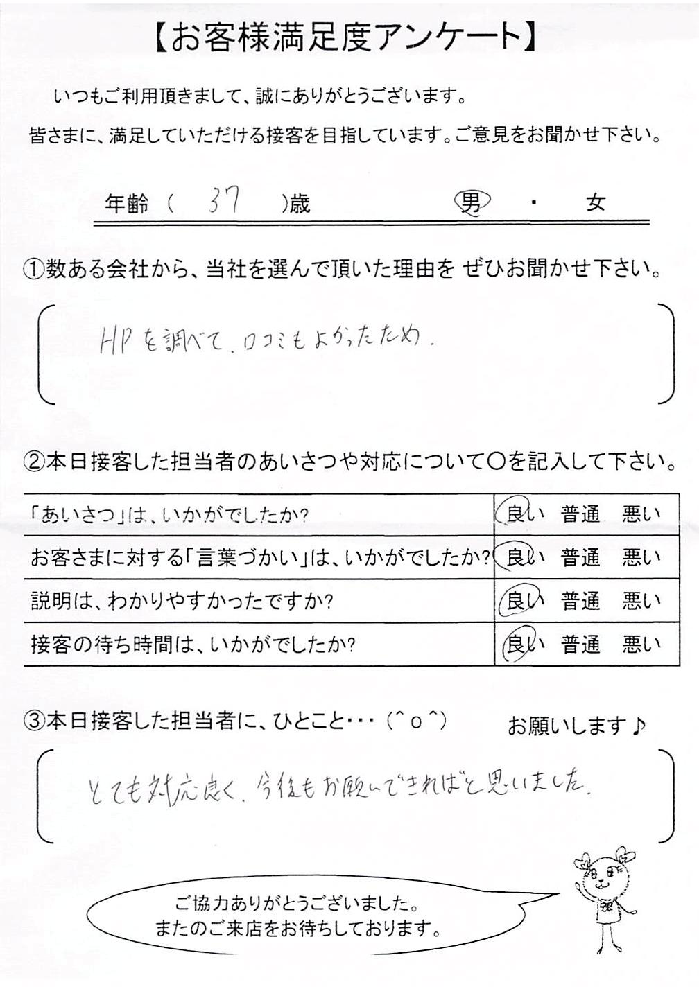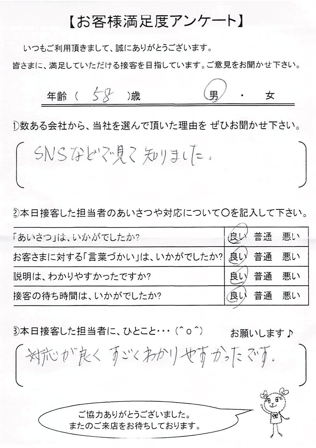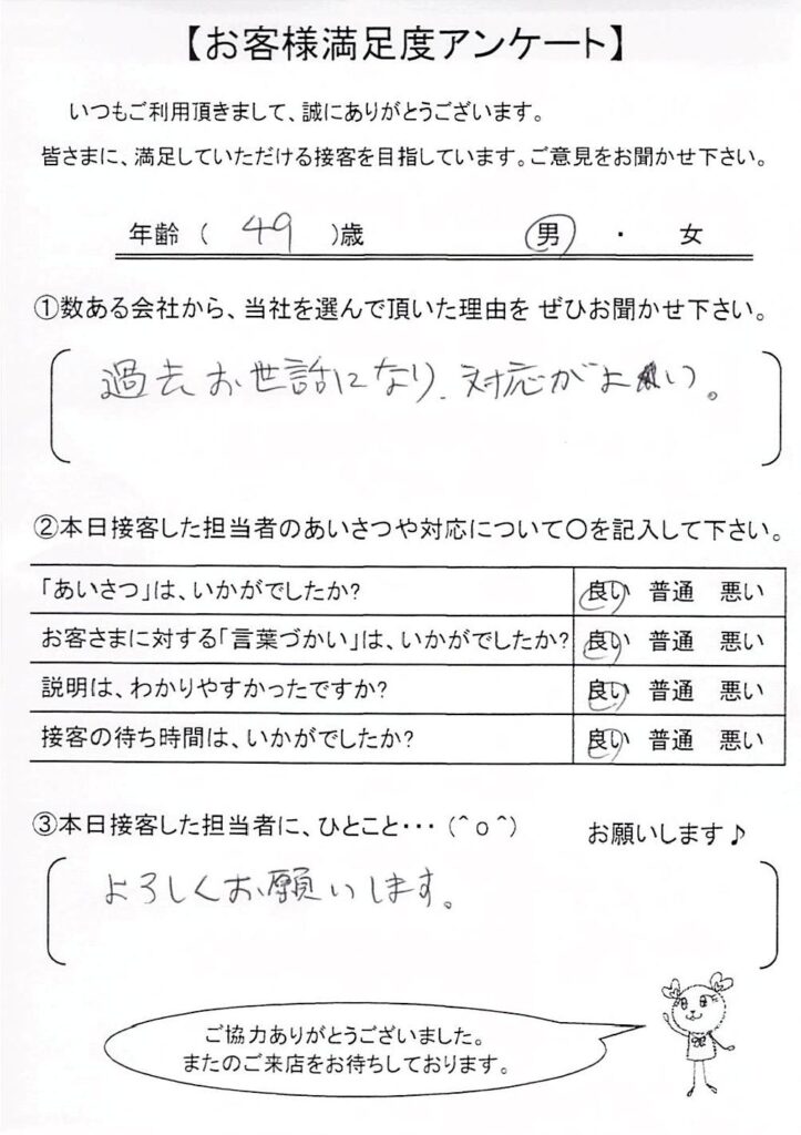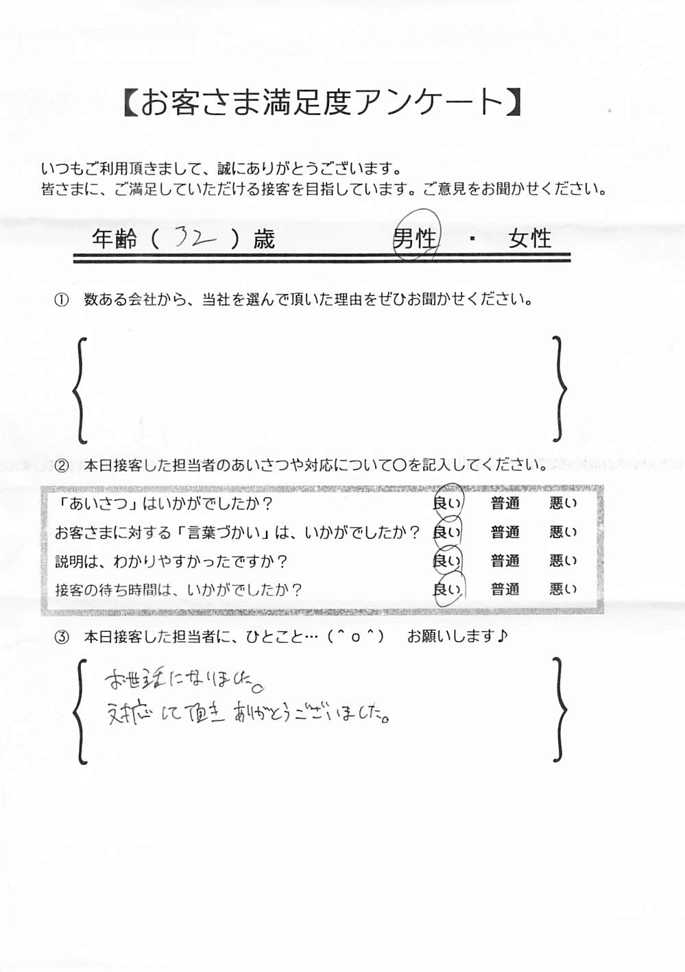 クチコミ・評判の書かれた、お客さまが実際に回答されたアンケートの原文がこちら↓