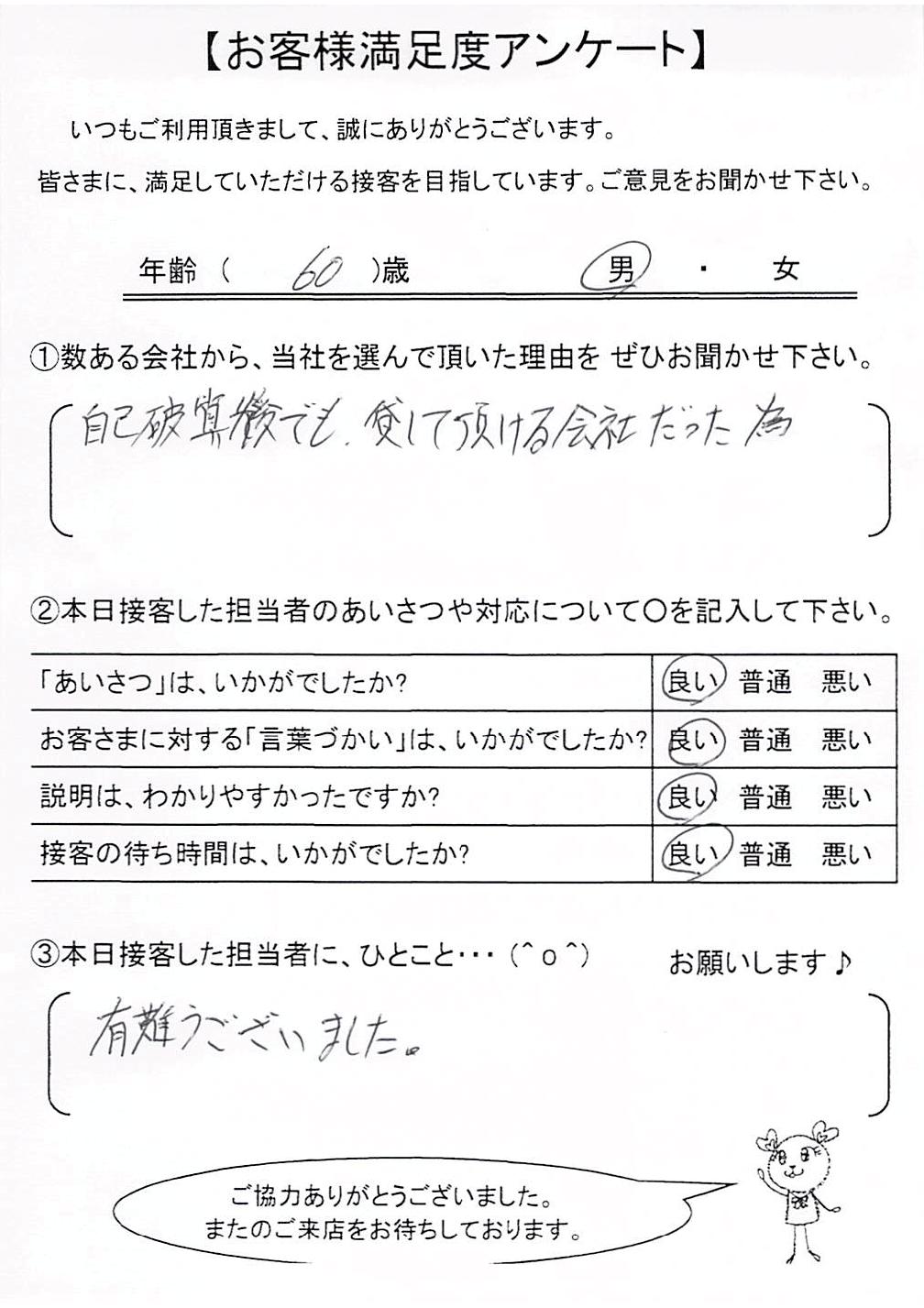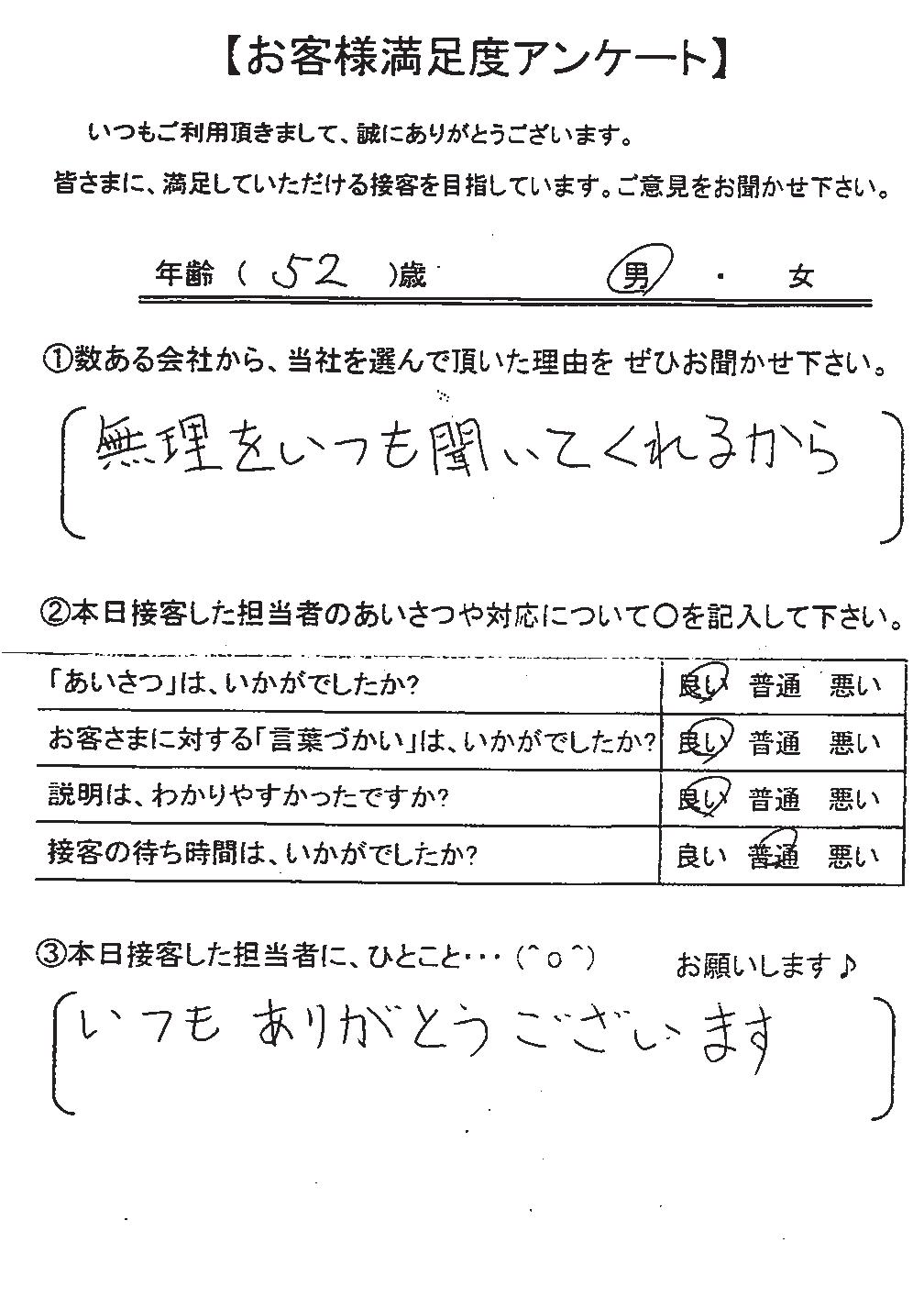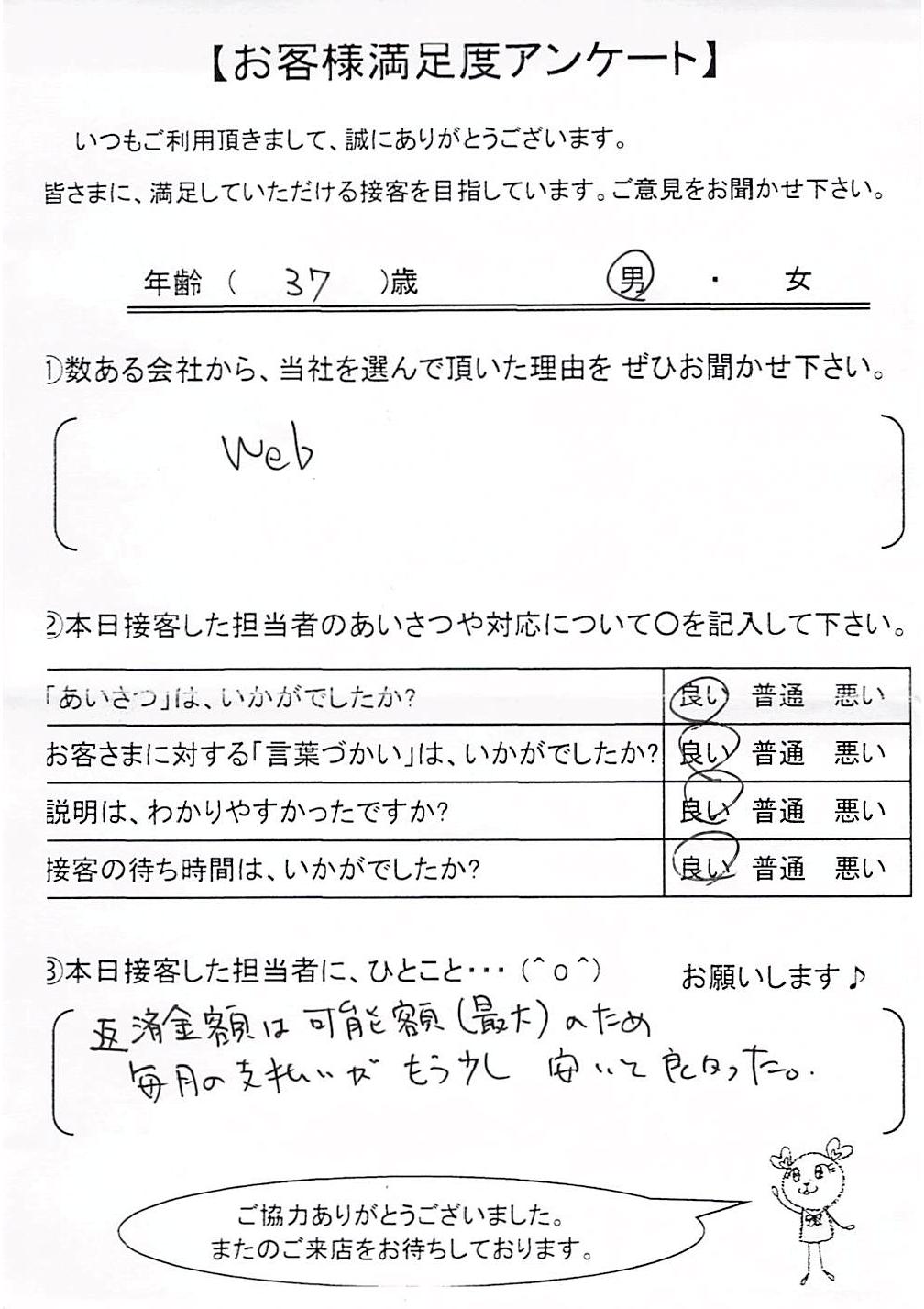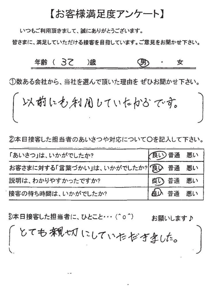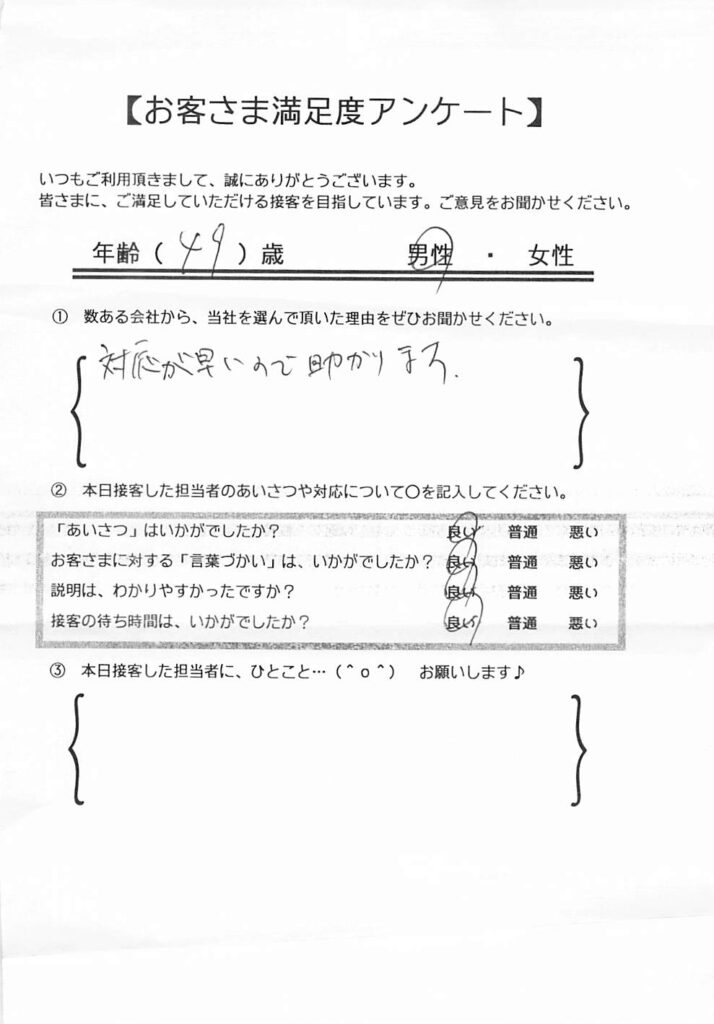 日本ファイナンスでは実際にご利用いただいているお客さまにアンケート用紙のご回答をお願いしており、お客さまから実際にお寄せいただいたクチコミや評判をそのまま紹介しています。