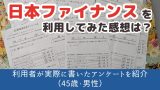 日本ファイナンスではお申し込みいただいたご利用者の皆さまにアンケートへのご回答をお願いしており、実際に寄せられた生の声をそのまま公表しています。