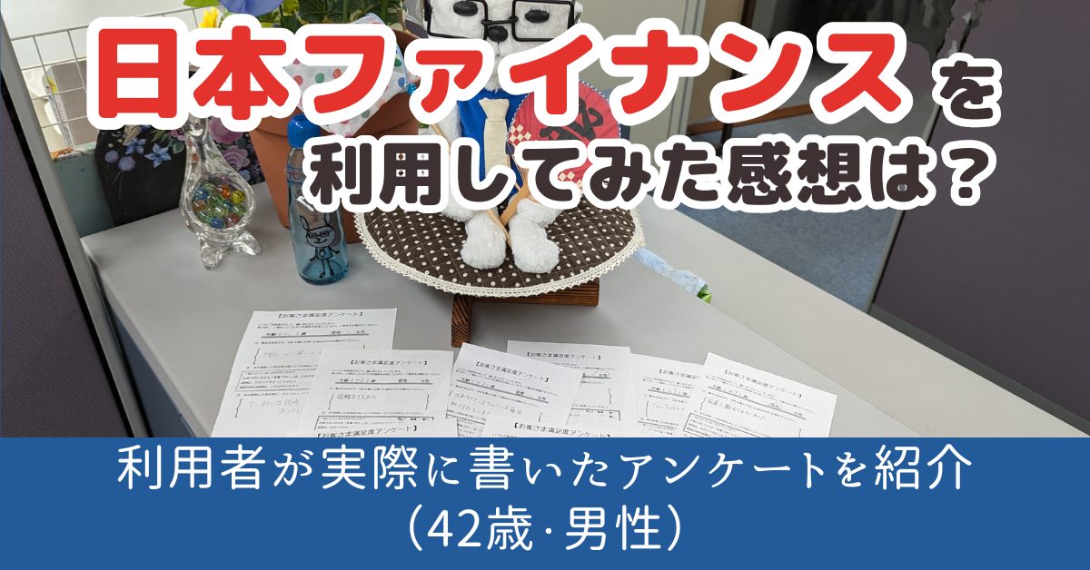 日本ファイナンスを利用してみた感想は?利用者が実際に書いたアンケートを紹介(42歳・男性)