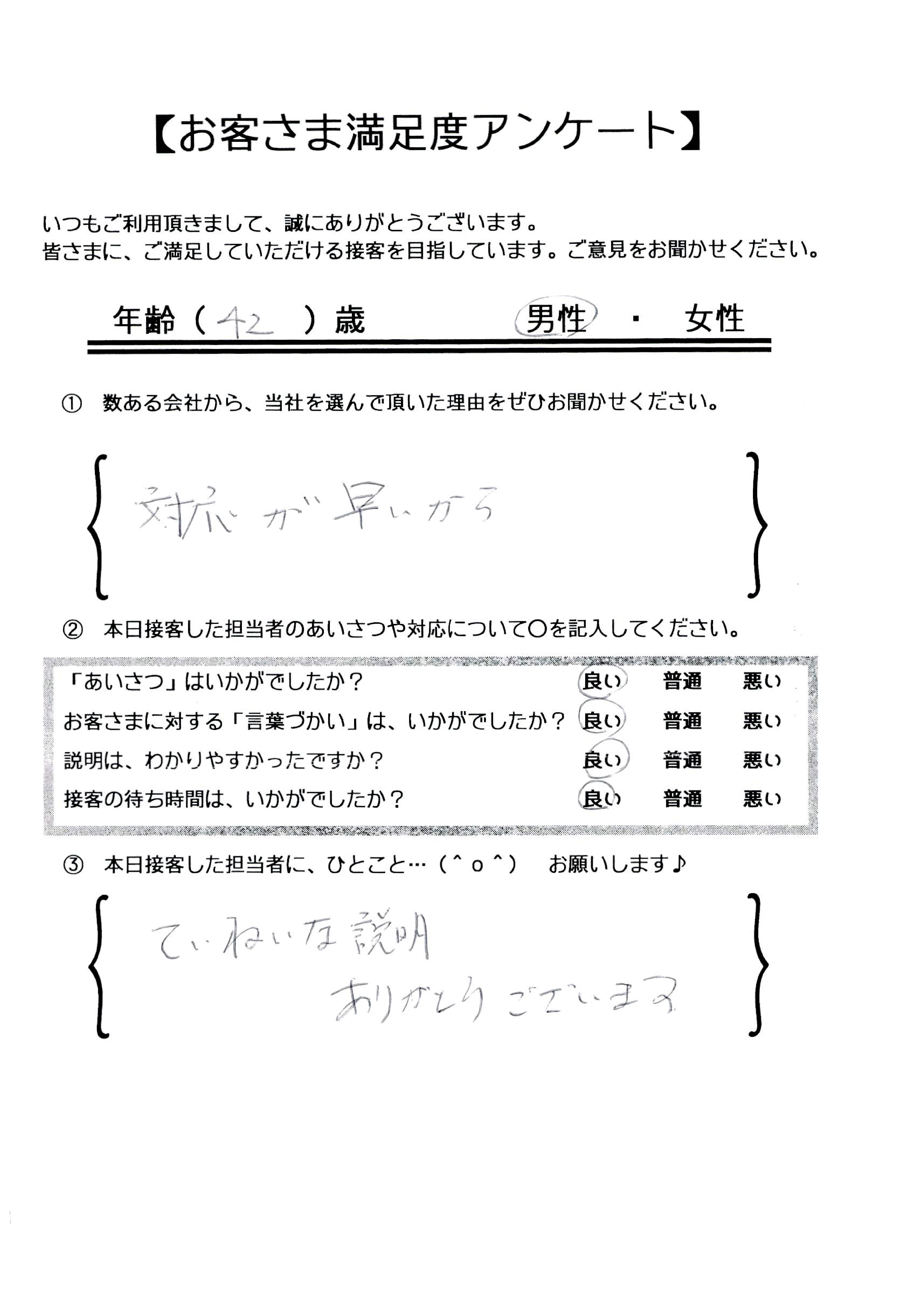 日本ファイナンスでは実際にご利用いただいているお客さまにアンケート用紙のご回答をお願いしており、お客さまが実際に書かれた用紙をそのまま紹介しています。